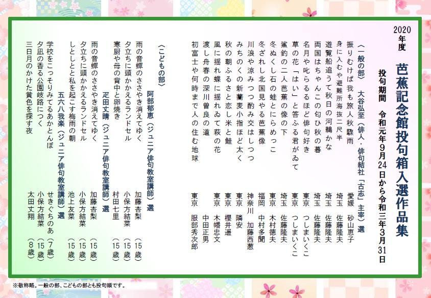 2020年度 芭蕉記念館投句箱 入選作品が決定いたしました。