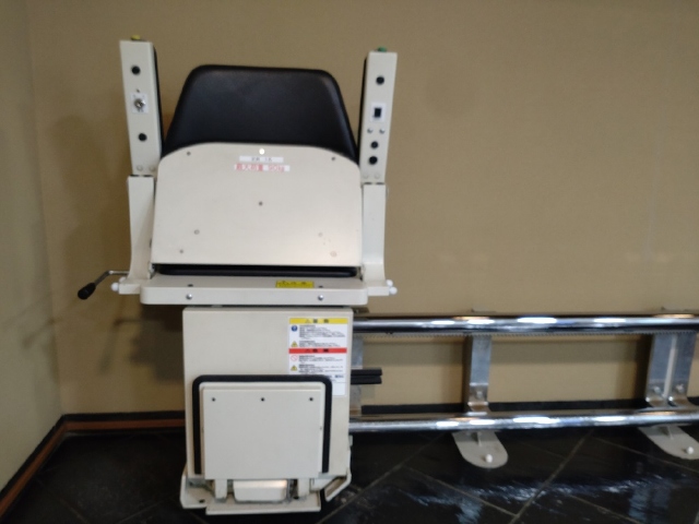 当館にはエレベーターの代わりに階段へ昇降機(定員1名)を設置しています。運転操作は職員が行いますのでご利用の際は事務所までお申し出ください。展示室各階に貸出用車いすがあります。(無料)※電話でお問い合わせください。