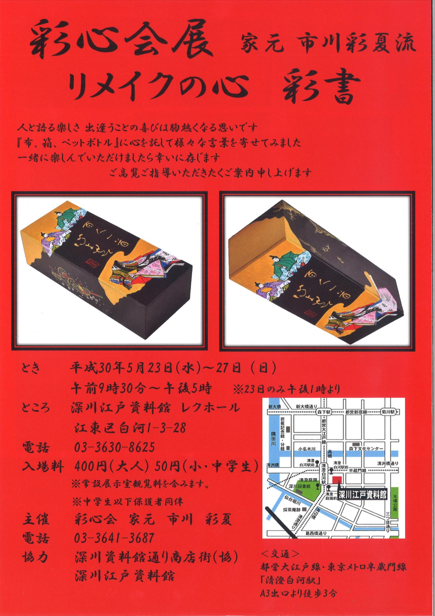 開催館すべて江東区文化センター森下文化センター古石場文化センター豊洲文化センター東大島文化センター砂町文化センター亀戸文化センター総合区民センター商工情報センター江東公会堂(ティアラこうとう)深川江戸資料館芭蕉記念館中川船番所資料館