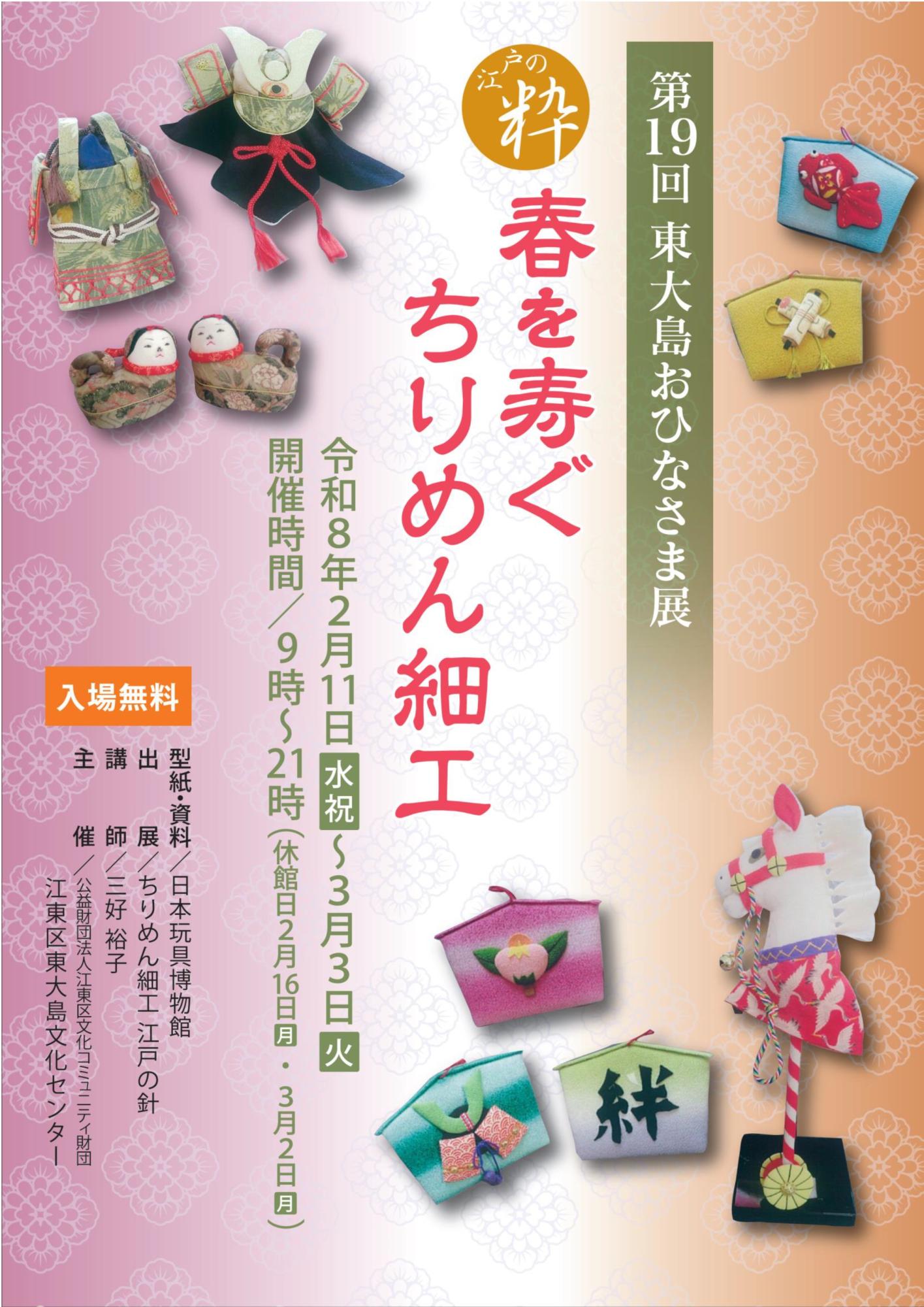 開催館すべて江東区文化センター森下文化センター古石場文化センター豊洲文化センター東大島文化センター砂町文化センター亀戸文化センター総合区民センター商工情報センター江東公会堂(ティアラこうとう)深川江戸資料館芭蕉記念館中川船番所資料館