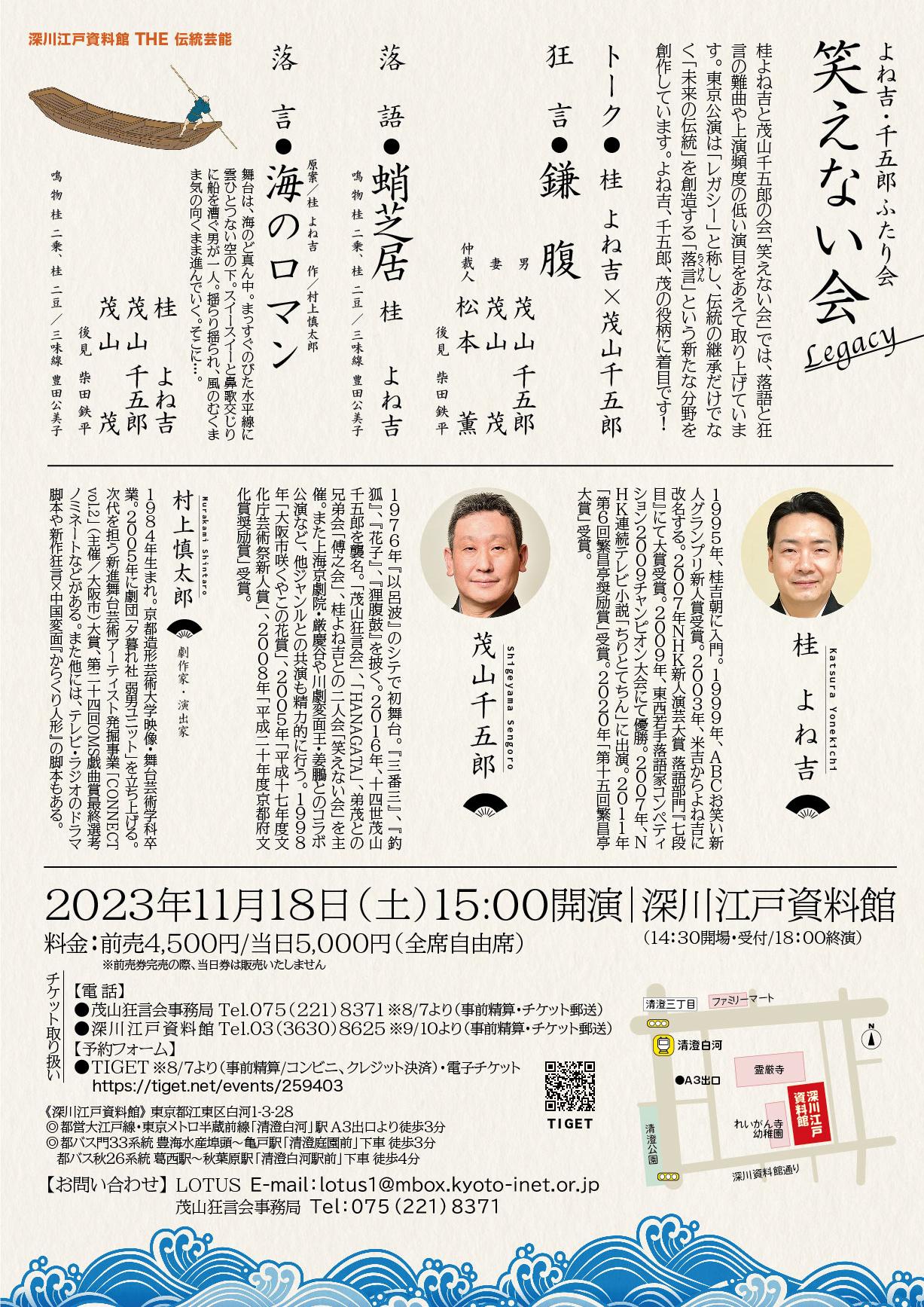 財団ホーム深川江戸資料館イベント・講座情報よね吉・千五郎ふたり会「笑えない会~Legacy~」