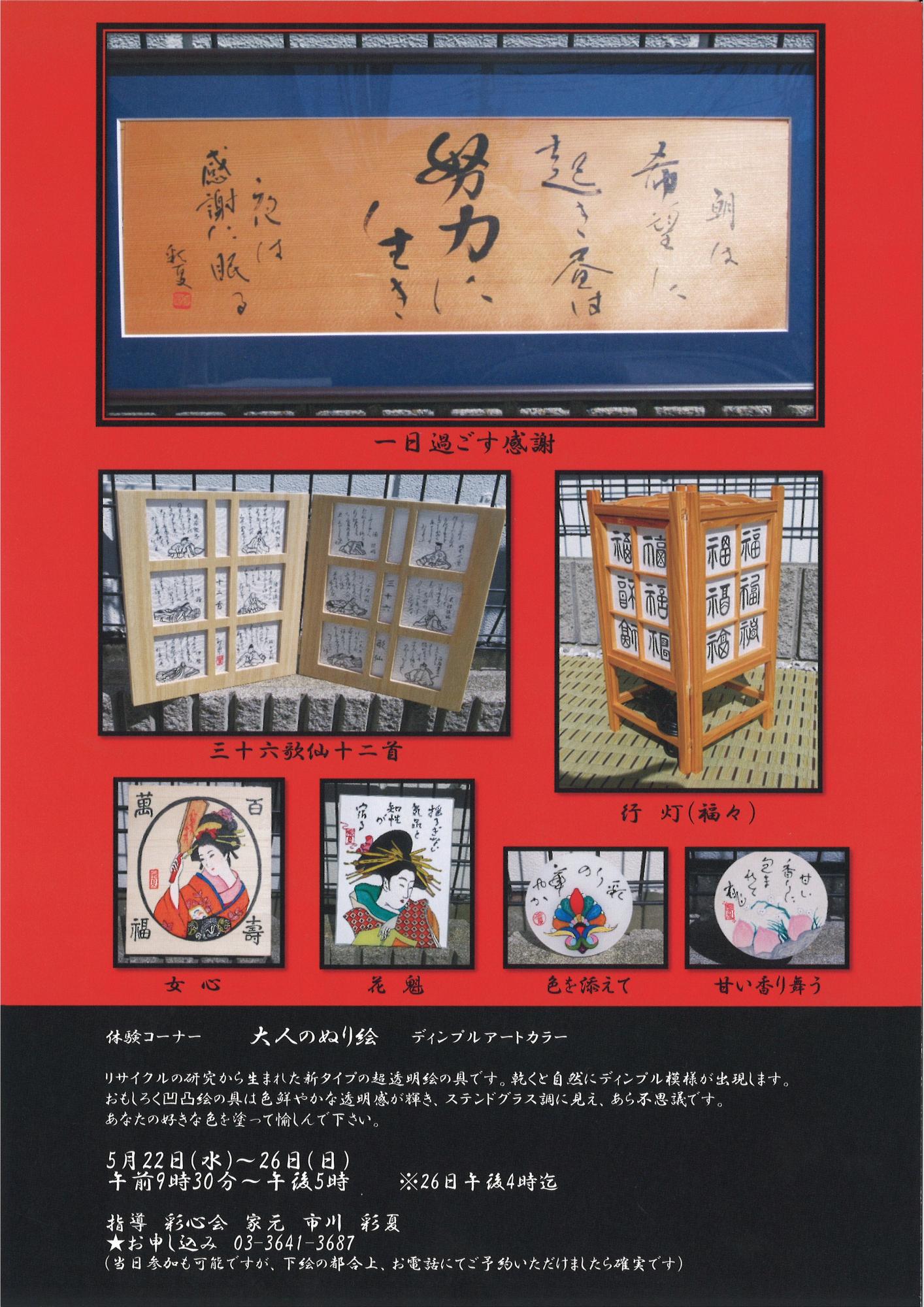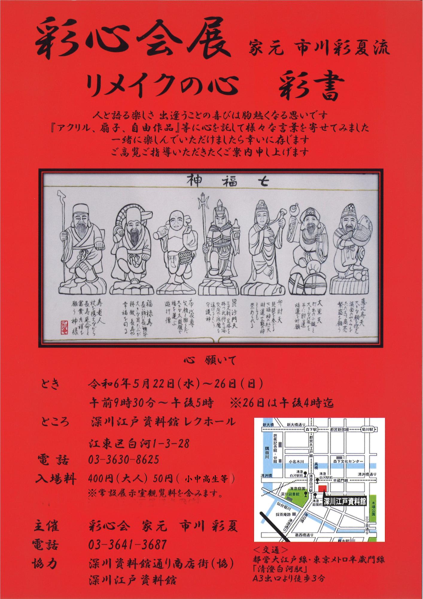 財団ホーム深川江戸資料館イベント・講座情報「彩心会展 リメイクの心 彩書 家元 市川彩夏流」