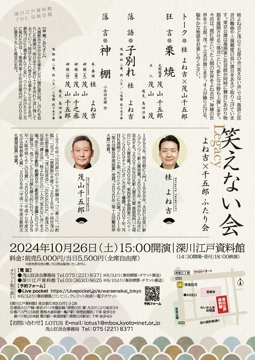 財団ホーム深川江戸資料館イベント・講座情報よね吉・千五郎ふたり会「笑えない会~Legacy~」