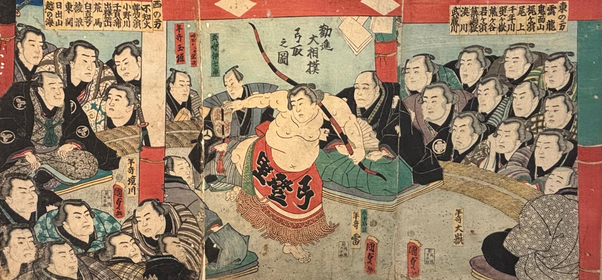 人々が熱狂する様は、多くの浮世絵や資料に残されています。現代に残された資料から、力士たちの迫力ある姿や、観戦する人々の歓声と熱気が聞こえてきそうなほど、生き生きと描かれています。