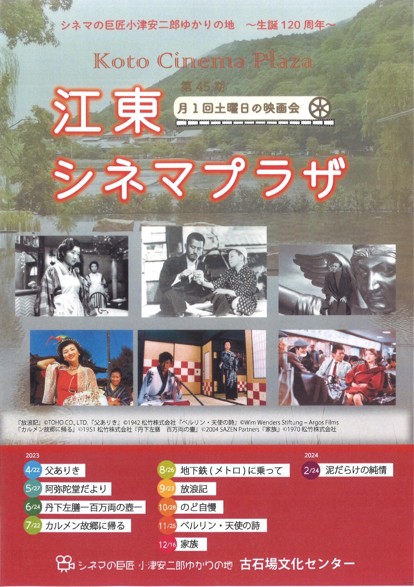 | ご鑑賞にあたって | ※各作品とも、現存する最良状態のフィルム原版より製作されたものですが、古い映画ですので、映像・音声に乱れが生じる場合がございます。また、止むを得ない事情により上映作品が変更になる場合がございます。予めご了承ください。 ※音声ガイド…映画の登場人物の動作や場面状況を、セリフや想像の邪魔にならないように配慮しながらシナリオ化し、上映時にナレーションを流します。今回の上映作品のシナリオはボランティアグループ「音声ガイド江東シネマアイ」が制作しています。 |