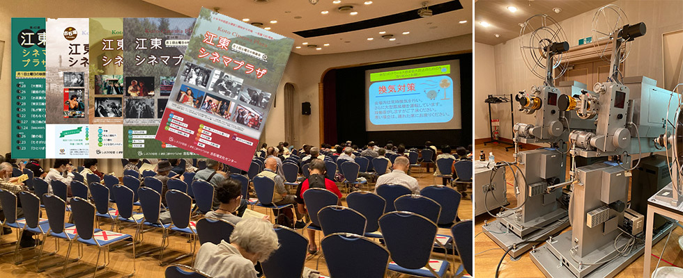 「江東シネマプラザ」は小津監督作品や昭和時代の邦画・名画を中心に、大きなスクリーンで映画を楽しむ上映会です。作品により、今では少なくなった35mmフィルムでの上映や、目の不自由な方も映画を楽しめる映画音声ガイドを付けた上映もあります。