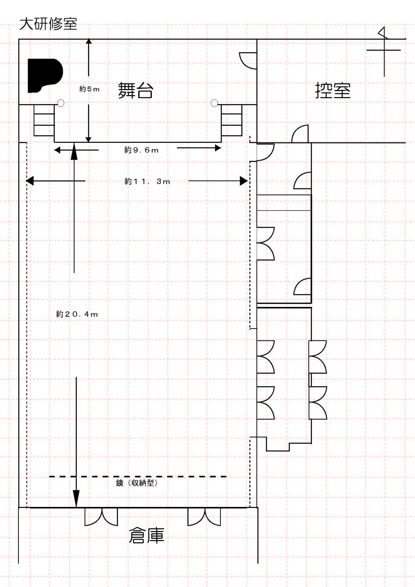 | 備付備品 | ホワイトボード1台 ハンガーラック1台 傘立て3台 案内板1台 吊り看板1台 鏡(収納型) 音響卓セット/マイク2本付(有料) |