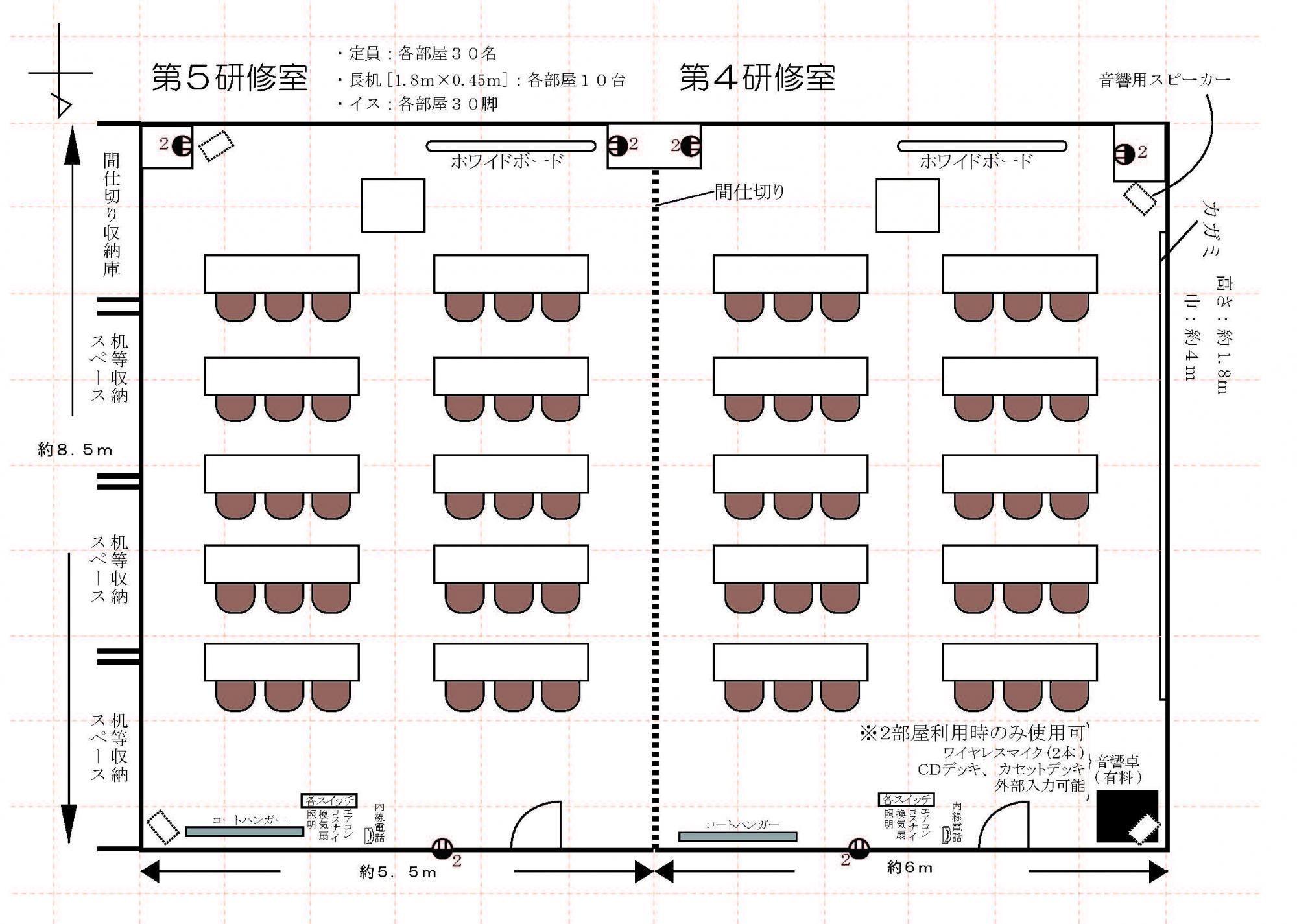 | 施設の連結・分割 | 第5研修室と連結可能 第5研修室 |