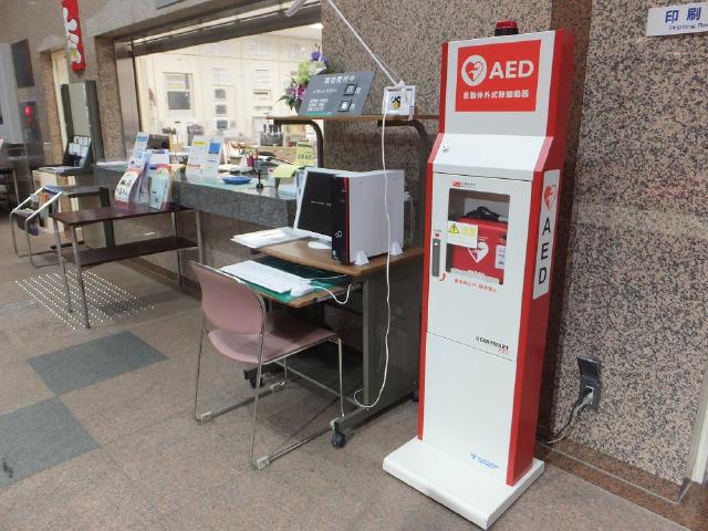 AEDは1階事務室前に設置しています。