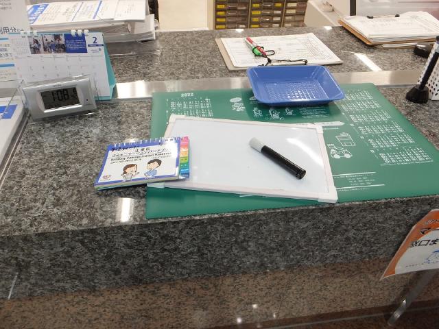 事務室窓口に筆談用具やコミュニケーションボードを用意しています。