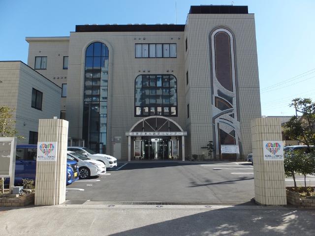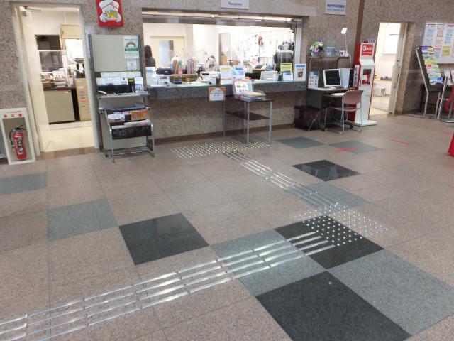 正面歩道から文化センター事務室まで点字ブロックを設置しています。