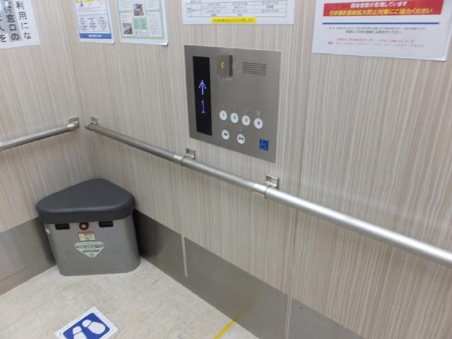 車いす対応エレベーターが1基あります。エレベーターチェアも備え付けています。