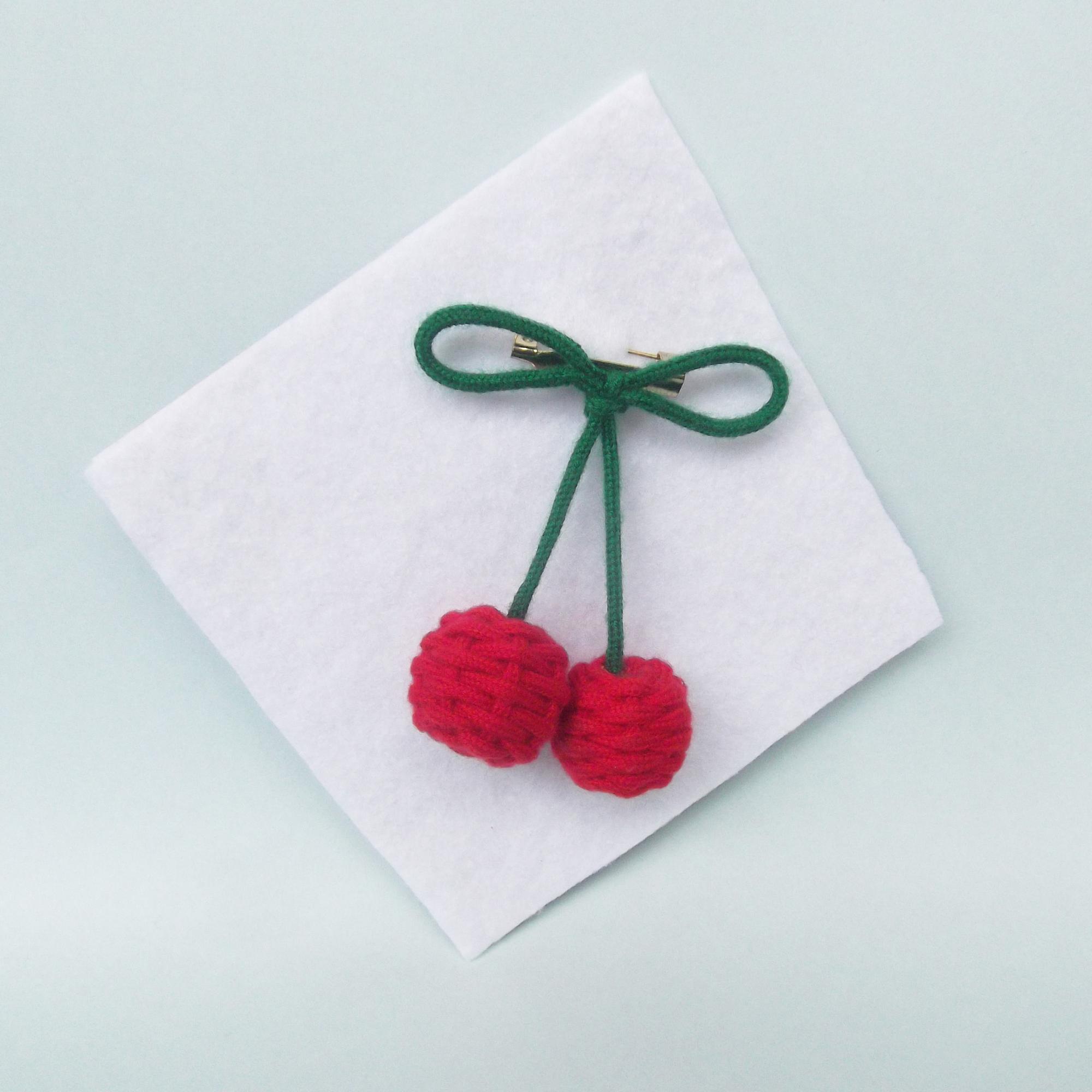 ②マクラメ さくらんぼのブローチ