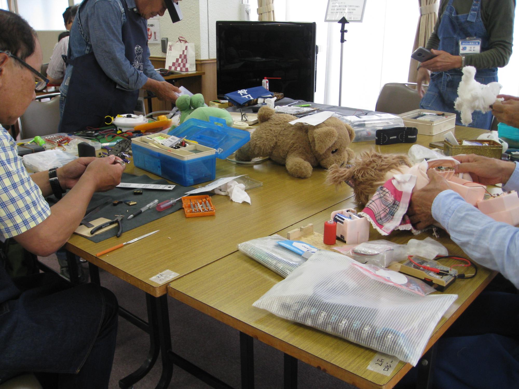 | ④おもちゃ病院 | 壊れたおもちゃやぬいぐるみをなおします。 時間 13時30分~15時 場所 2階展示ロビー 協力 おもちゃ病院江東 直接会場へお越しください。 |