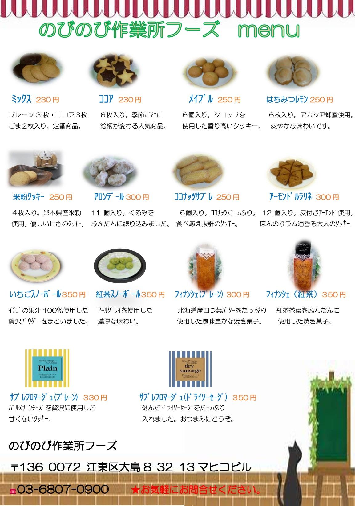 | ⑥手作り焼き菓子販売 | 手作りの焼き菓子販売 時間 10時から無くなり次第終了 米粉クッキー、ココナッツサブレ、アーモンドプラリネ、スノーボール、フィナンシェほか 場所 2階談話ロビー 協力 のびのび作業所フーズ |