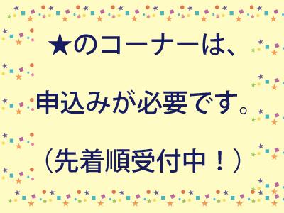 | 申込不要 おもちゃ病院 | 【時間】(1)10時~12時 (2)13時~15時 ※開催時間内に直してほしいおもちゃをお持ちください。修理費は原則無料ですが、部品代を実費でいただく場合がございます。ゲーム機、アンティークトイなど直すことが出来ない物もございますことをご了承ください。 |