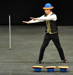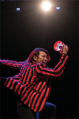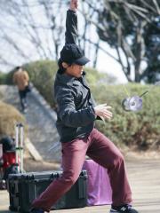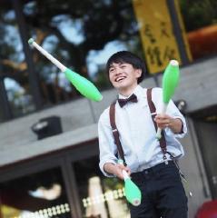 大道芸・ジャグリングジャグリングの一種、ディアボロのエキスパート。日本一の技術・音楽と繊細に組み合わされた演技は観る人を魅了する。フィナーレのディアボロ4個の技は必見。