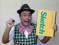 似顔絵大道芸「似顔絵問答」 お客様とお話をしながら、1人3分くらいで、次々と似顔絵を描きます。「似顔絵王子」 歌いながら、観客の似顔絵を描くコント。