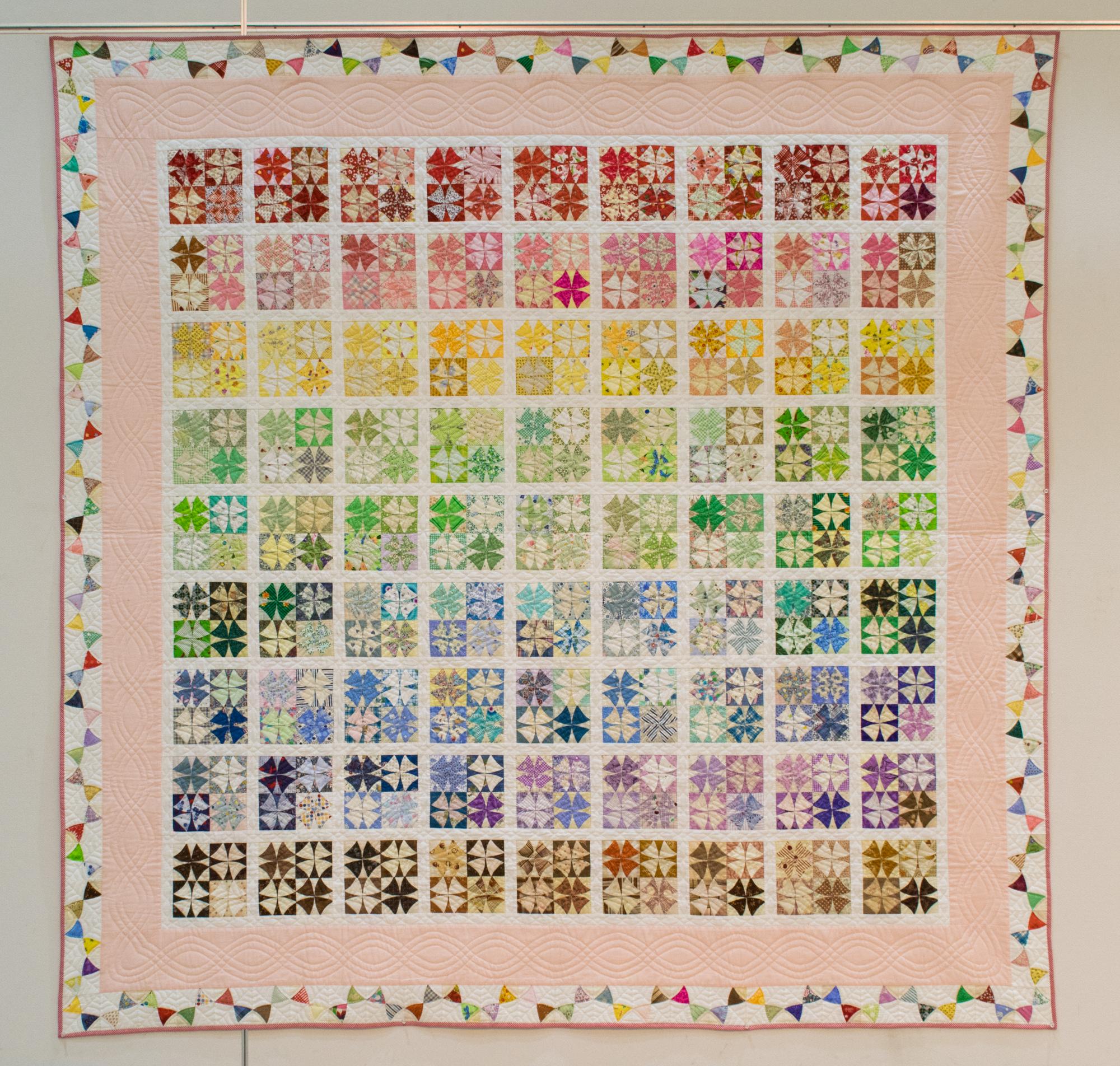 いろとりどりの素敵な布の組み合せで、パッチワークキルトを楽しんでいます。