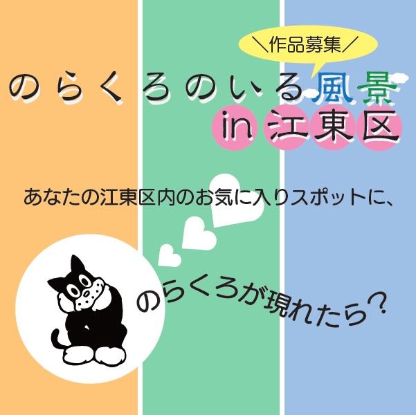 | 応募内容 | 「あなたの江東区内のお気に入りスポットに、のらくろが現れたら?」 1931年に、区ゆかりの漫画家・田河水泡の手によって誕生した「のらくろ」は、90年経った今でも大人気のキャラクター。現在の江東区に、もしのらくろが現れたら、どこで、何をしていると思いますか?伝統・未来・水彩都市、3つの魅力を持つ江東区。あなたの区内のお気に入りの風景にのらくろを描きこんで、江東区のさらなる魅力を引き出すような作品を大募集!入賞した12作品は、記念品として2023年のカレンダーに採用します。 |