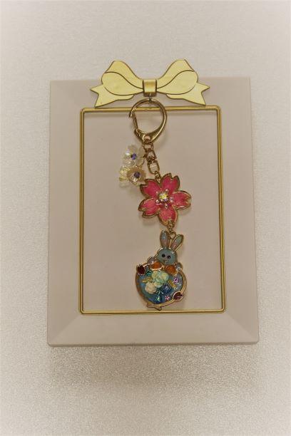 桜とぽっちゃりウサギのバッグチャーム