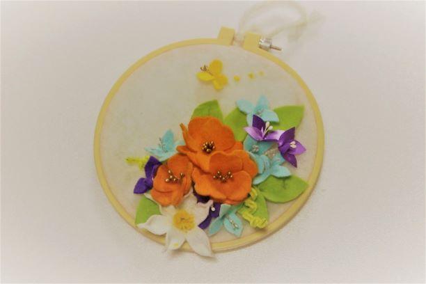 刺しゅう枠にアレンジ 春色アートフラワー