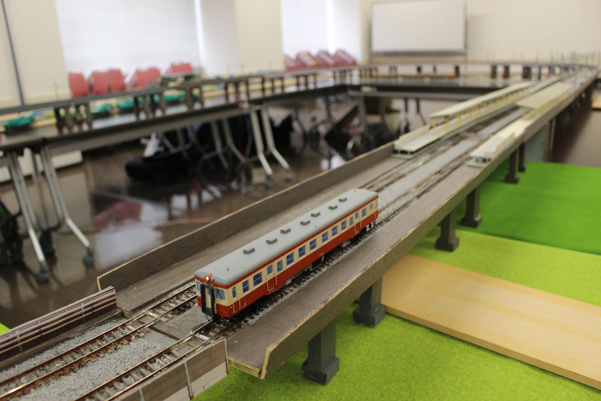 | 鉄道ジオラマ展示 | 予約不要・入場無料 ●2階多目的ホール 10mの直線を実物と同じフル編成の新幹線や貨物列車、特急などの人気列車が走ります。 時間 9月13日(土)~15日(月祝)10時~17時 ※夜間運転…13日(土)・14日(日)18時~19時 ●3階会議室・研修室 1/80スケールの鉄道模型の走行展示や、 ジオラマサークルによる展示があります。 |