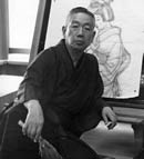 明治32年(1899)、福島県の白河に生まれ、9歳のとき、深川区東町(現在の江東区住吉一丁目)に移り住みました。少年時代、小名木川の川遊びで伊東深水と出会い、その後、深水の影響で絵の道に入ることになります。