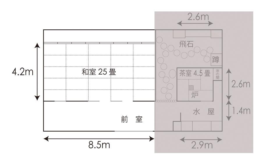 | その他 | ・出入口は茶室と共通。 ・宴会、交流会等、音が出る場合は隣接の茶室をセットでお申し込みください。 面積表記は、室内の倉庫、柱等も含むため、下部レイアウト図とは合致しない場合があります。 |