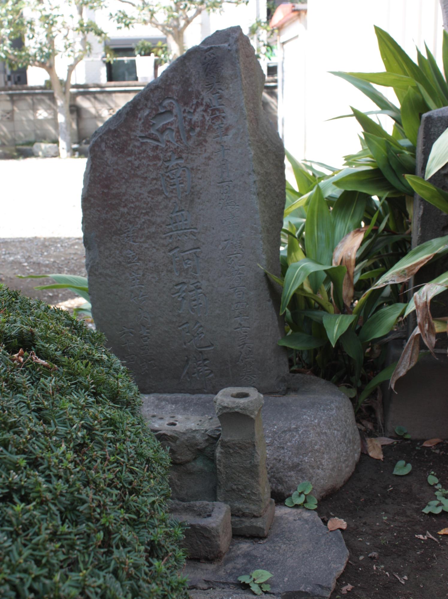 大正6年海嘯横死者供養塔(持宝院)。大正6年の台風による砂村新田の横死者146名の氏名と住所不明3名が書かれた零位名簿があります。葛西橋付近に住む地元の篤志家が建立しました。