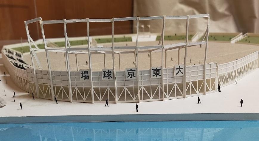 洲崎球場跡(新砂1-1・2付近、1936~1938)。日本プロ野球草創期の野球場で昭和11年2月に結成されたプロ野球チーム「大東京軍」の本拠地として建設。写真は復元模型です。