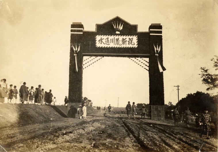 「荒川放水路通水式」大正13年(1924)(国土交通省荒川下流河川事務所所蔵)