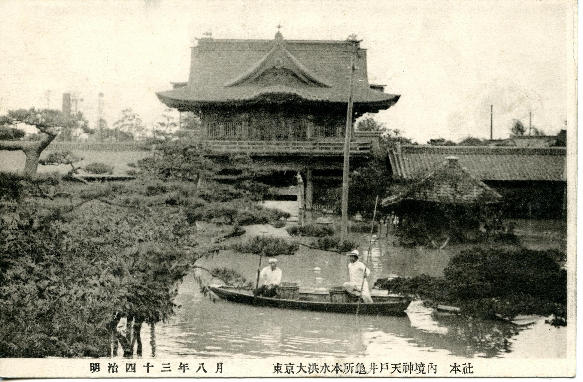 「明治四十三年八月 東京大洪水本所亀井戸天神境内 本社」(江東区教育委員会所蔵)