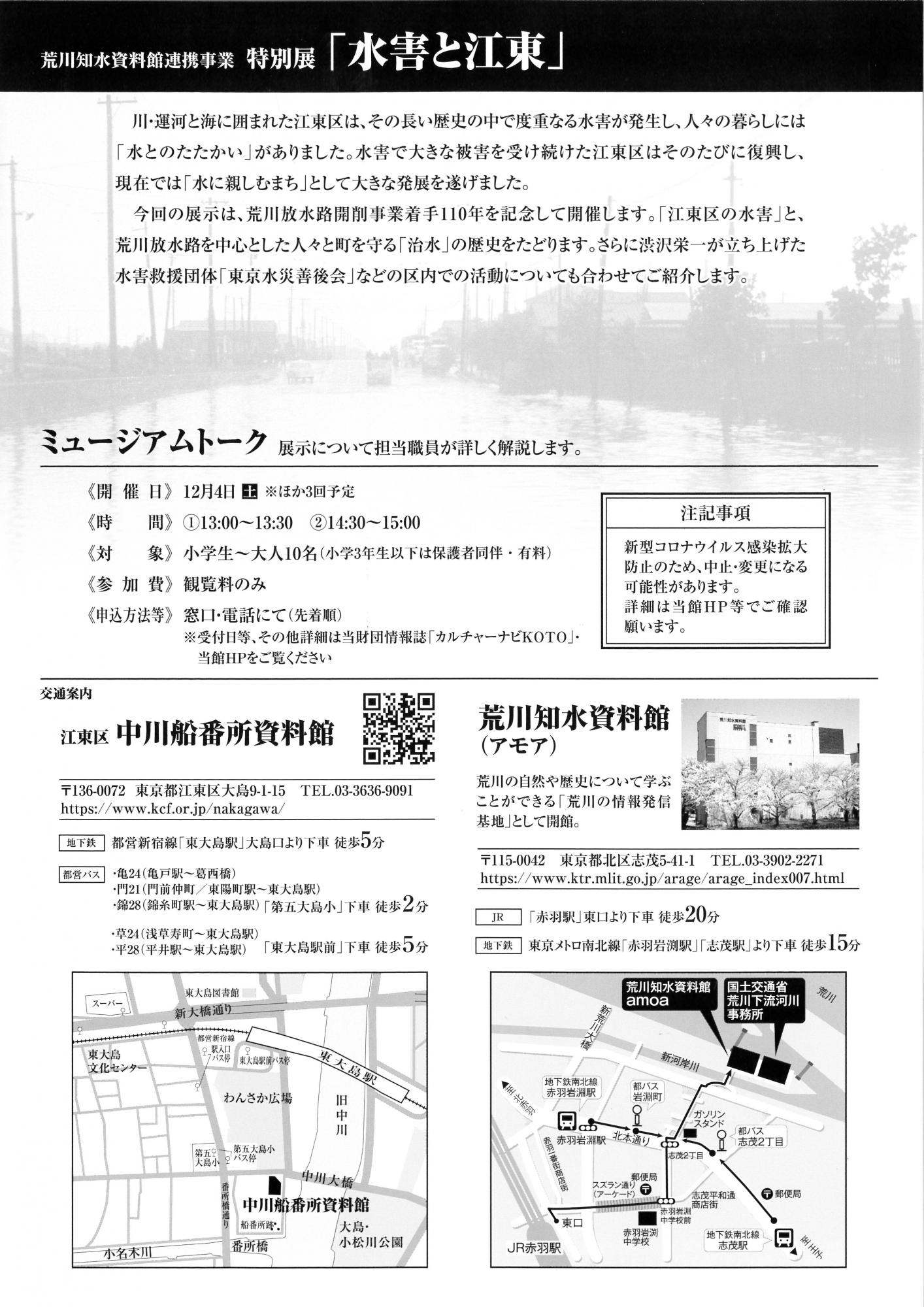 特別展チラシ裏面| ミュージアムトーク | 会期中、開催します。 日程、申込方法等は、別途「ミュージアムトーク」HPをご覧ください。 12/4(土) ミュージアムトーク |