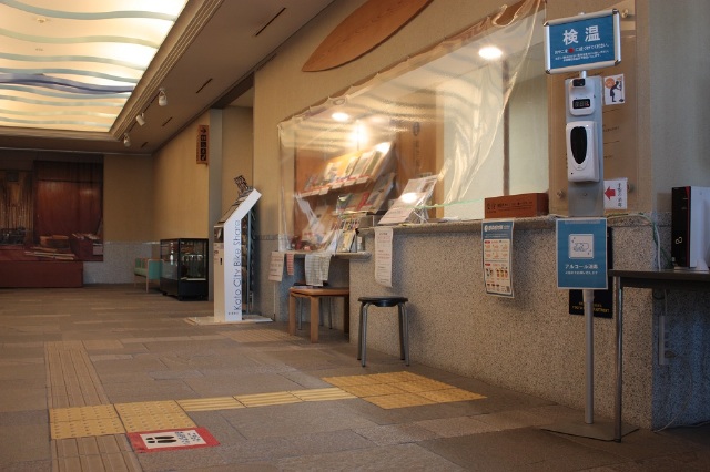 玄関アプローチからエントランスに入り、すぐ右手が受付です。受付で観覧券をお買い求めください。障害者手帳はこちらで拝見します。