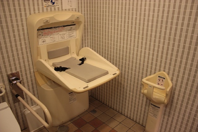 バリアフリートイレ内におむつ交換台とベビーチェアがあります。