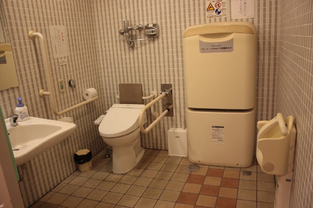 バリアフリートイレは1階エントランス右手奥に1か所あります。オストメイト設備はありません。