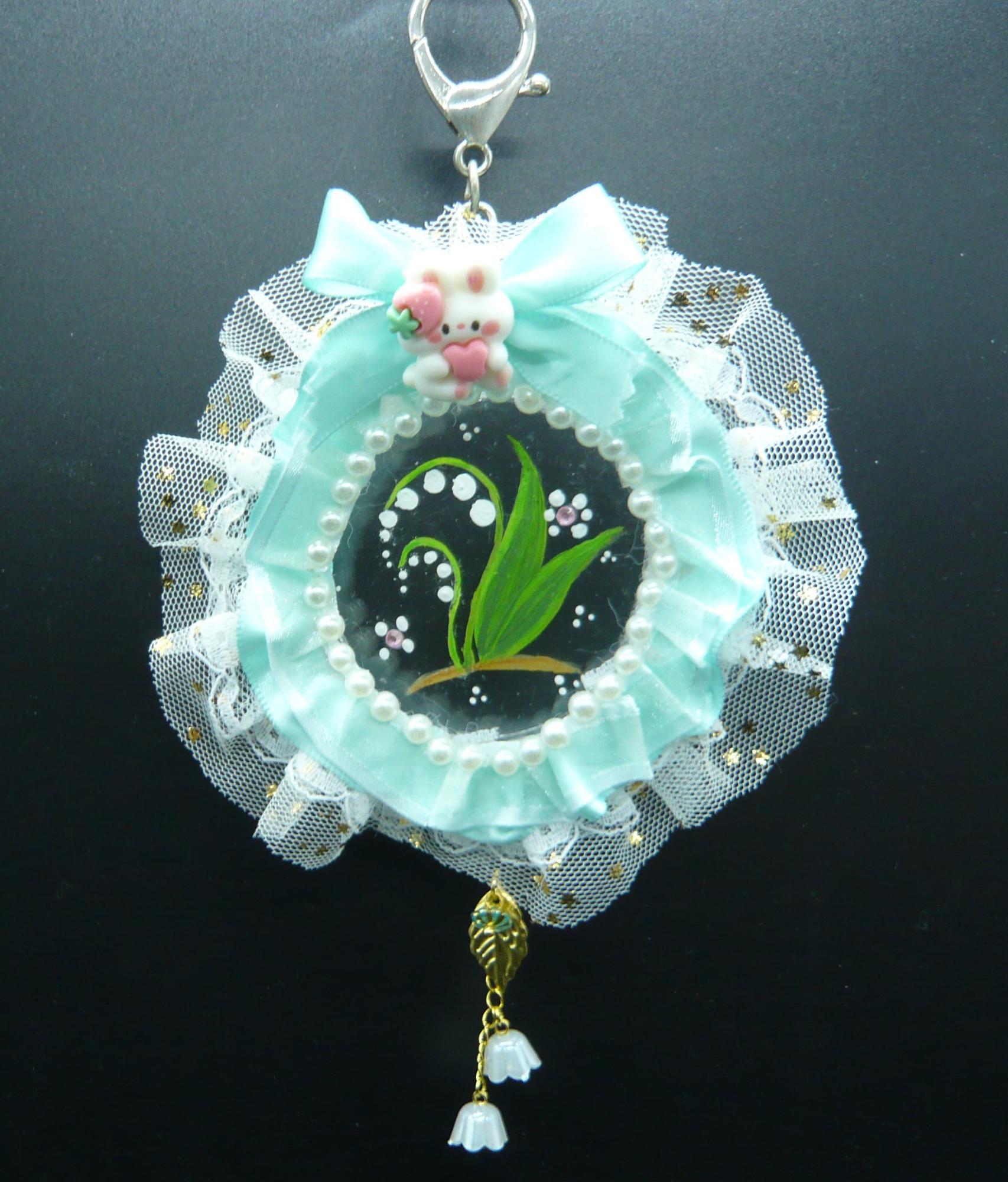 4.すずらんのロゼット風バッグチャーム