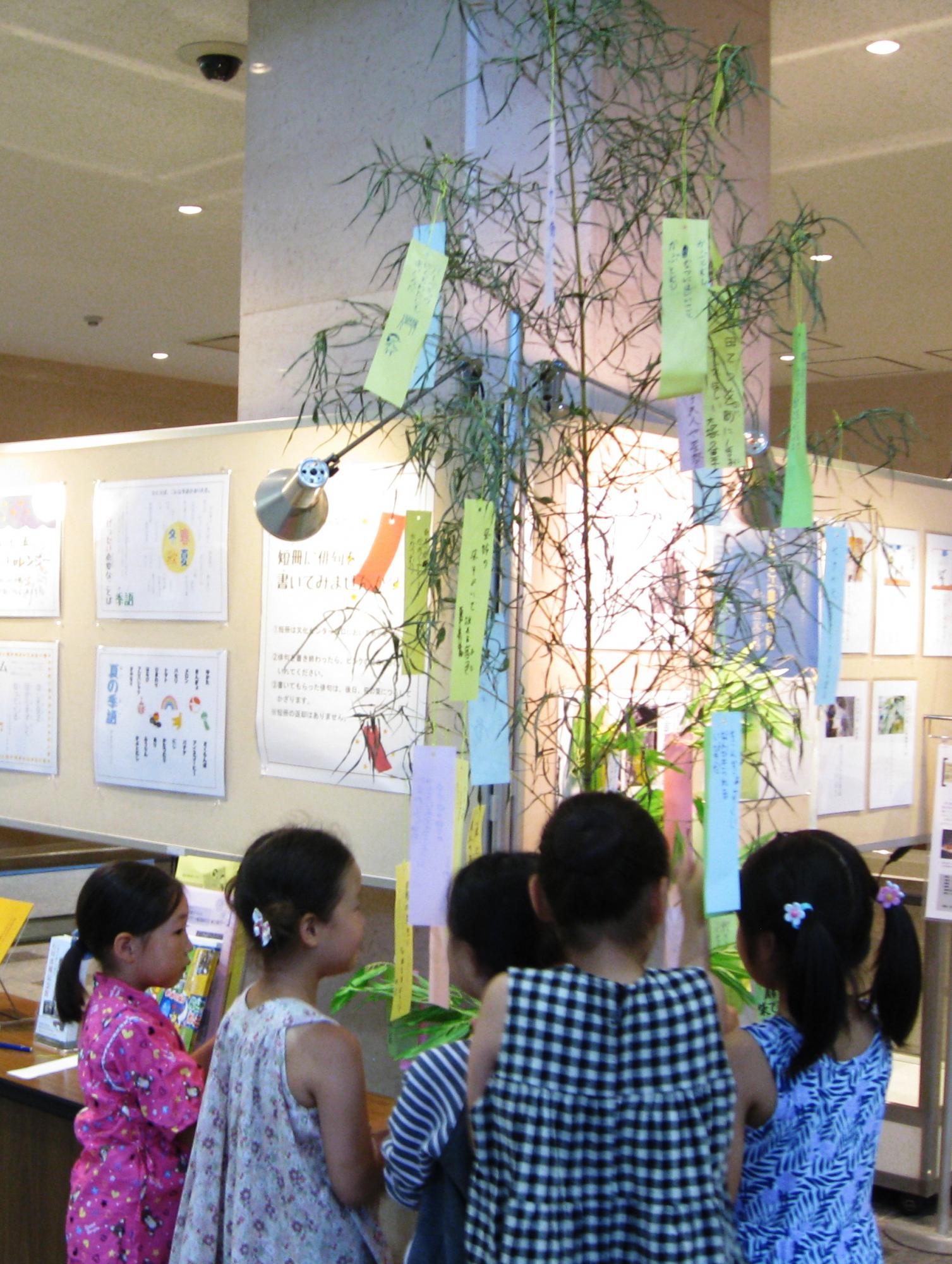 俳句を詠んで七夕飾り 季節の五・七・五展示