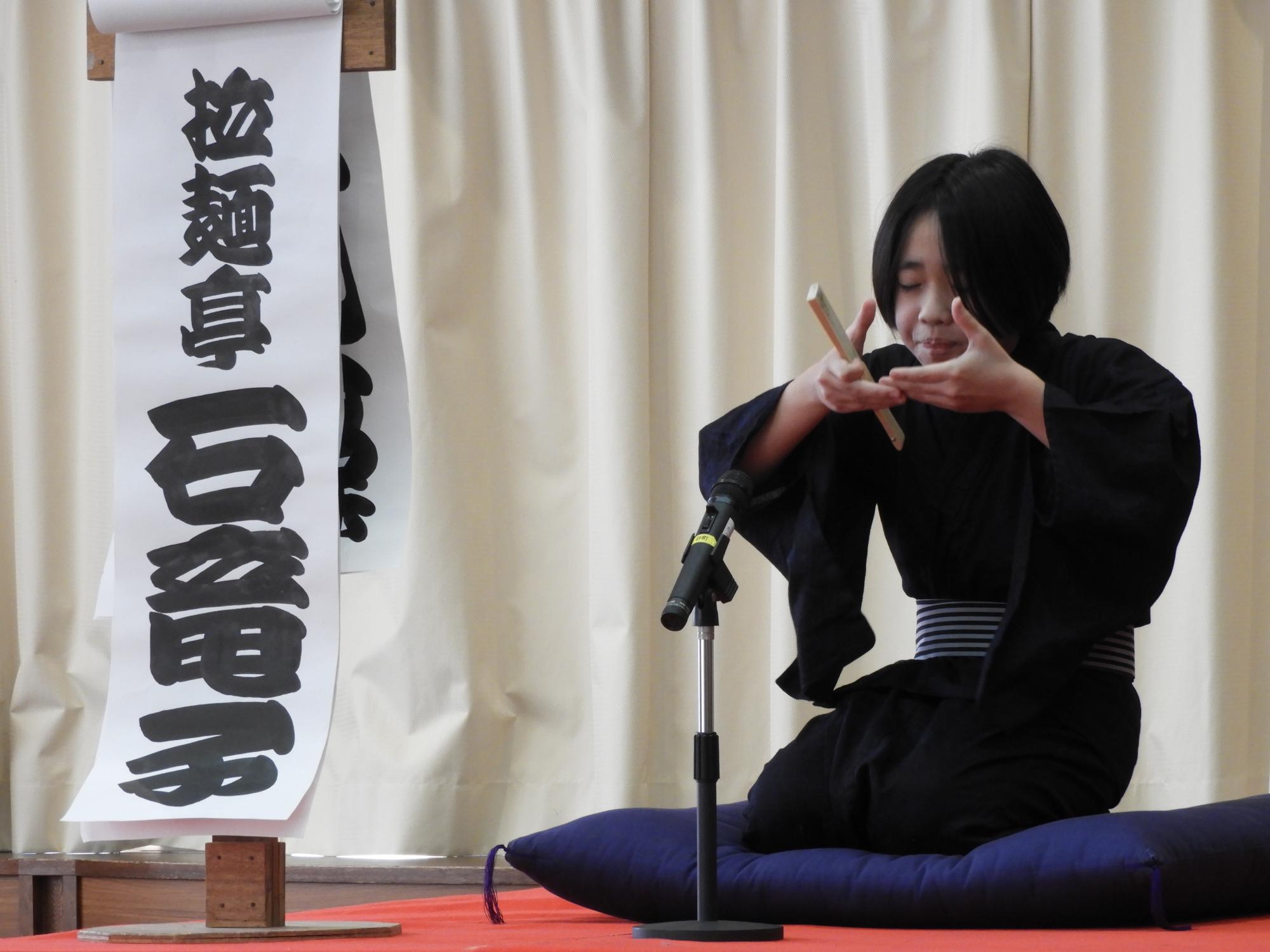 小噺や落語を覚えながら、人前での話し方や礼儀作法なども学びます。