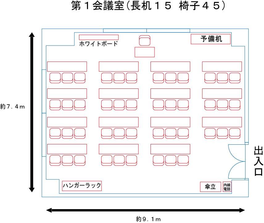 | 備付備品 | ホワイトボード1台 ハンガーラック1台 傘立1台 教卓1台 天井吊下式スクリーン |