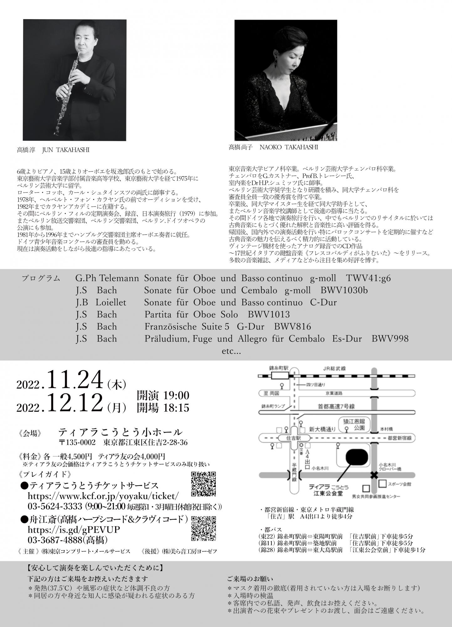 | 出演 | OBOE 高橋淳 CEMBALO 髙橋尚子 |