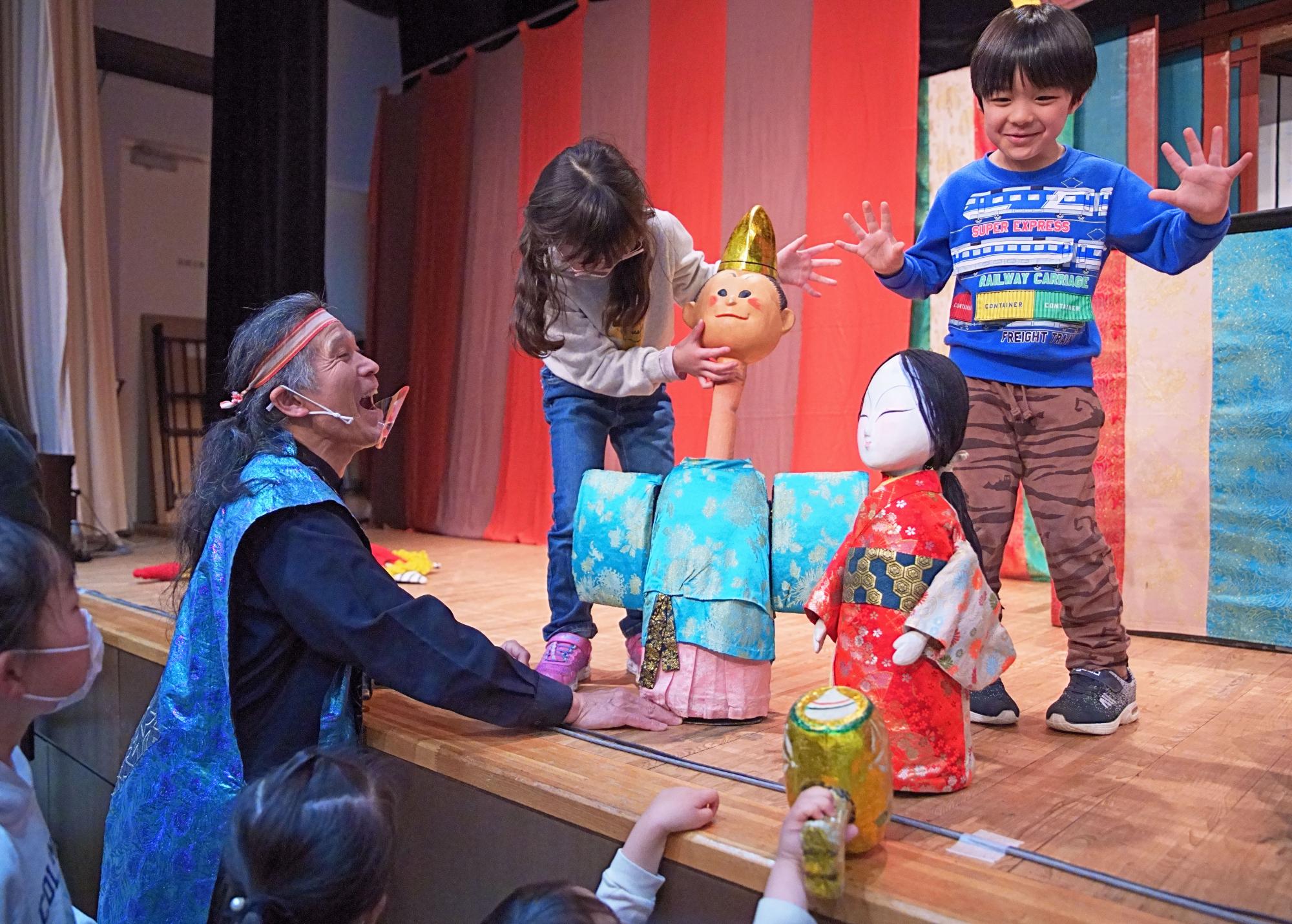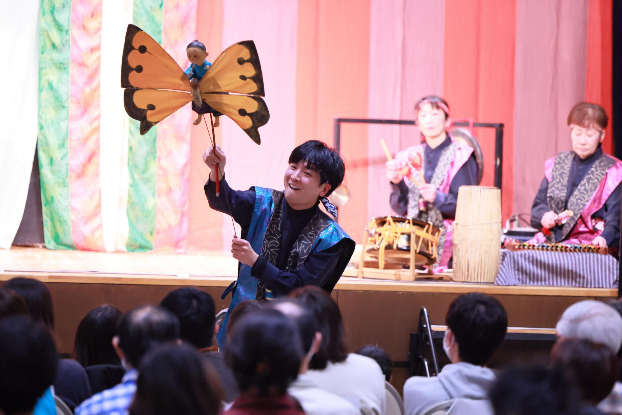 楽器の説明、手話の紹介、宙返り人形の体験などの交流会も含めて50分ほどのプログラムです。