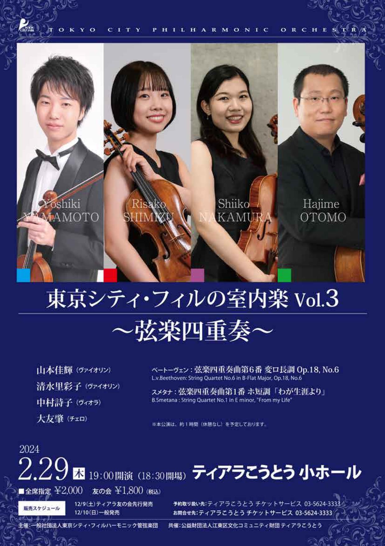 財団ホームティアラこうとうイベント情報東京シティ・フィルの室内楽Vol.3 ~弦楽四重奏~