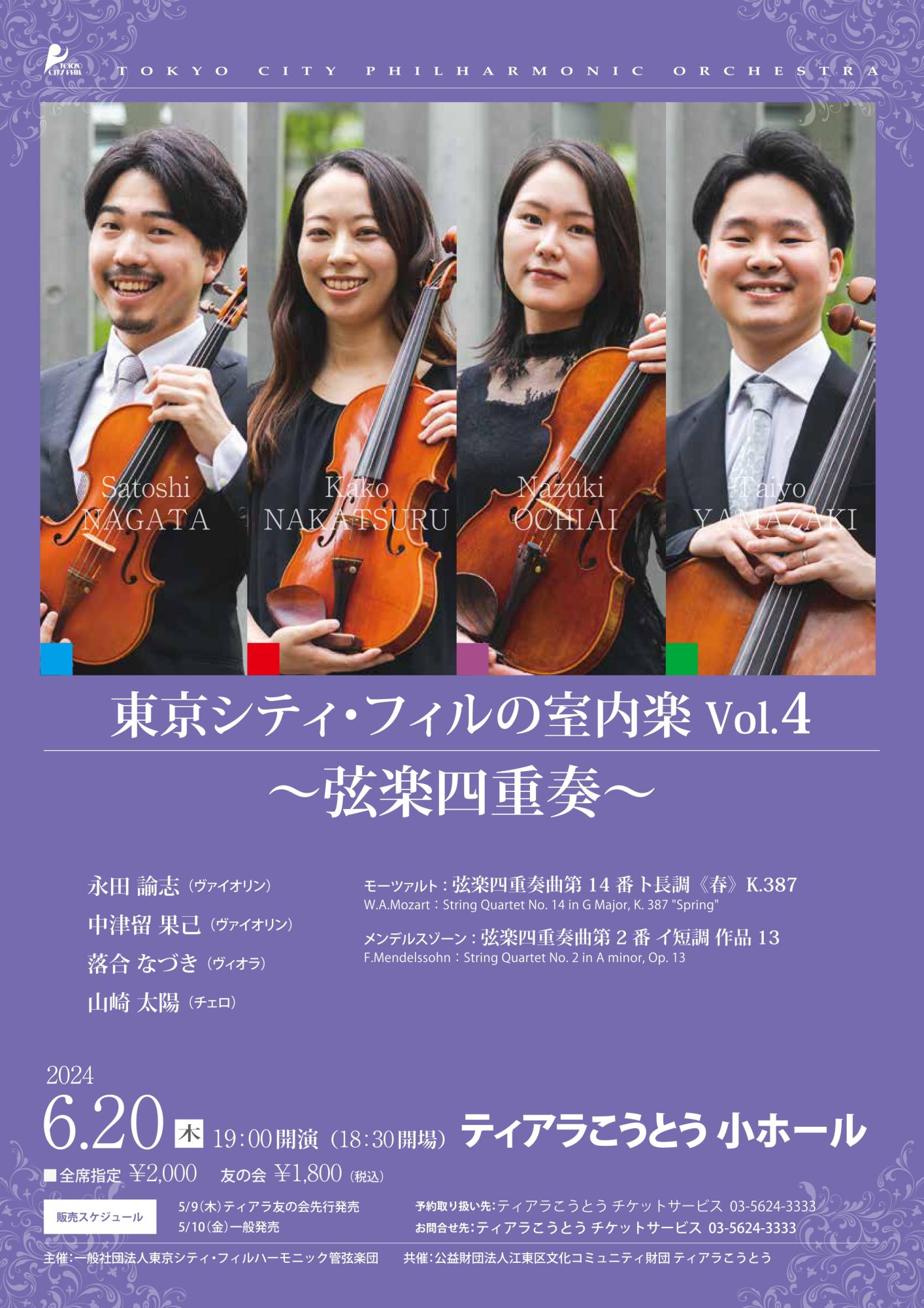 財団ホームティアラこうとうイベント情報東京シティ・フィルの室内楽Vol.4 ~弦楽四重奏~