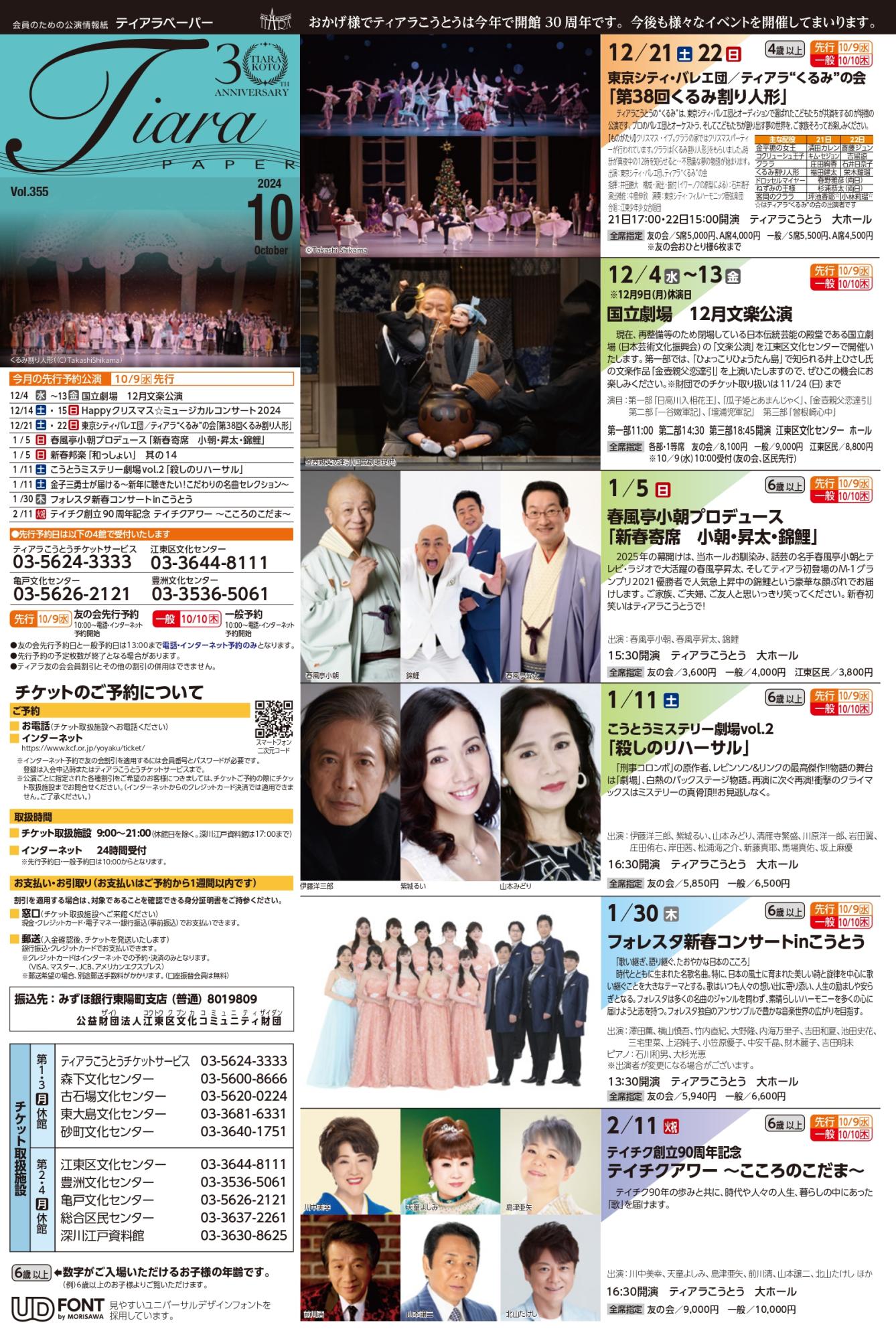 公演情報紙「ティアラペーパー」は毎月原則1日に発行しています。