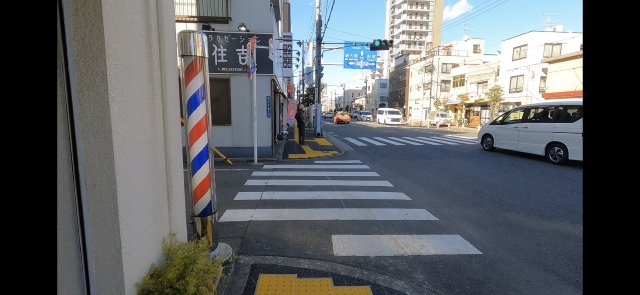 住吉駅前交差点まで進んでください。(徒歩3分ほど)