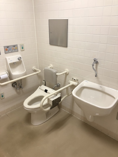 バリアフリートイレは1階大ホール、地下1階軽食喫茶店横、地下2階リハーサル室横に3か所あります。