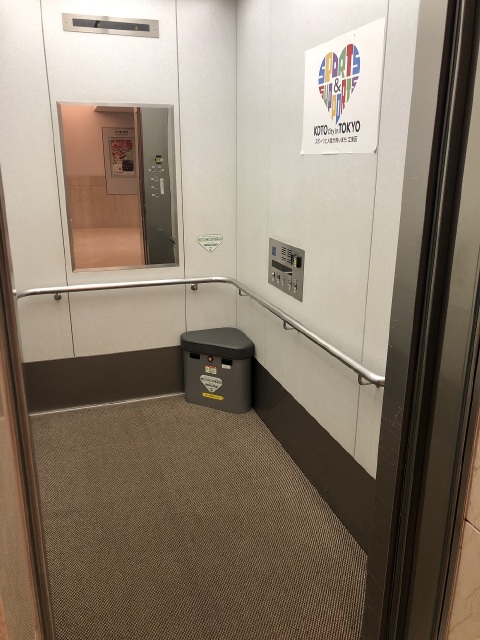 エレベーターは地下2階~1階に1基、地下2階~1階に1基(大ホール出演者用)、地下1階~1階に1基(大ホール主演者用)、1階~4階に1基(大ホール観客用)あります。