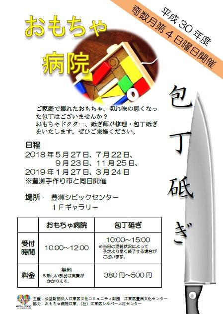 | 包丁砥ぎ | 切れ味が悪くなった包丁に砥ぎ師が新品の頃の切れ味を蘇らせます。 包丁は大切に包んでお持ちください。 料金:380円~500円 協力:江東区シルバー人材センター |